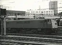 The Class 82 is an AC electric locomotive intended for express services on the West Coast Main Line.[3] Its design shared numerous aspects with, and had similarly performance attributes to, the preceding British Rail Class 81, such as its power rating of 3,300 hp, and use of fully-suspended traction motors, and multi-anode mercury arc rectifiers.[3]