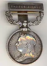| Clasps | Matabeleland 1893, Rhodesia 1896, Mashonaland 1897, Mashonaland 1890 |