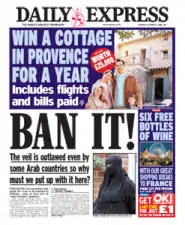 The Daily Star was prevented from publishing a mock-up page of what it would look like if it was run by Muslims. The mock-up "Daily Fatwa", which promised a "Page 3 Burkha Babes Special" and competitions to "Burn a Flag and Win a Corsa" and "Win hooks just like Hamza's", was prepared to run as page 6 in that day's edition till members of the National Union of Journalists refused to co-operate on the grounds that it was deliberately offensive to Muslims.[40] Zoo Magazine, one of the classic "lads' mags", instead announced plans to publish a double-page spread making fun of Muslim law. (Ben Knowles is the deputy editor of the Star, and former editor of Zoo.) The section will be labelled "Your all-new veil-friendly Zoo!", while other headlines include "Public stonings!", "Beheadings!" and "Absolutely nobody having any fun whatsoever". The magazine, which regularly features naked women will, on these pages, instead feature a woman in a burqa, with the heading "A girl! As you've never seen her before!".[41]