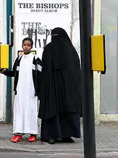 Birmingham Metropolitan College, with a large Muslim enrolment, banned all face coverings for security reasons in September 2013,[51] a decision supported by Prime Minister David Cameron. Union activism had the ban overturned.[52] Several newspapers claimed that private Islamic schools in Tower Hamlets, Southall and Lancaster force pupils to wear face veils when they are outside the school buildings. The three schools in question clearly denied this. However, their school uniforms contain headscarfs and the jilbab, a long gown. The former Mayor of London and current Prime Minister, Boris Johnson, opposes having children wearing veils.[53]