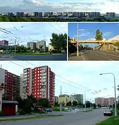 The vast majority of Vinohrady is made up of about 50 coloured paneláks, which are visible from many parts of Brno. It is surrounded by Brno-Líšeň to the east and southeast, Brno-Židenice to the southwest, Brno-Maloměřice and Obřany to the northwest, and the village of Kanice to the north.