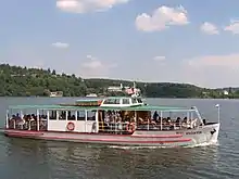 The Brno Public Transportation Office operates boat rides on the reservoir during the summer season. The boats run from Bystrc harbour (“Přístaviště”) to Veveří Castle, and sometimes continue to Veverská Bítýška (depending on the water level). The newest boats are named Lipsko, Utrecht, and Vídeň (after Leipzig, Utrecht and Vienna, Brno's twin cities); and the older ones are called Brno, Dallas, and Veveří. The boats run every 45 minutes. Tickets can be purchased at the harbour at the ticket office.