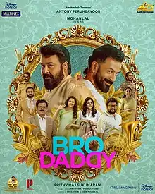 Bro Daddy is a 2022 Indian Malayalam-language comedy-drama film directed by Prithviraj Sukumaran and produced by Antony Perumbavoor through Aashirvad Cinemas, with a screenplay by Sreejith N. and Bibin Maliekal. The film stars Mohanlal and Prithviraj Sukumaran alongside Lalu Alex, Meena, Kalyani Priyadarshan, Kaniha, Unni Mukundan, Jagadish, Mallika Sukumaran and Soubin Shahir in supporting roles. The songs and background score for the film were composed by Deepak Dev.