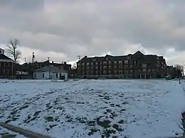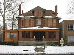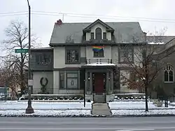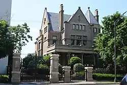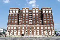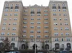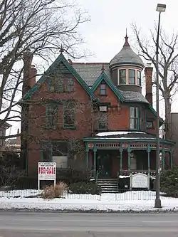 Early in Columbus's history, around the mid-1800s, East Broad Street became one of the most fashionable places to live, from downtown past Franklin Park. This carried into the early 1900s, when grand hotels and apartment buildings like the Royal York and Brunson Place were built. One early house from 1838, the Alfred Kelley mansion, was torn down and replaced with the Christopher Inn around 1961, itself torn down in 1988.[6]