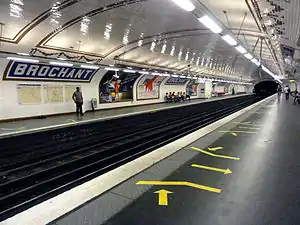 Brochant (French pronunciation: [bʁɔʃɑ̃]) is a station on Line 13 of the Paris Métro. Located in the 17th arrondissement, it is situated under the Avenue de Clichy at Rue Brochant, from which the station derives its name. It is part of the line's northwestern branch toward Les Courtilles.