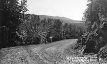 Construction of Brockway Mountain Drive began in early 1933 by the Keweenaw County Road Commission with federal highway funding designed to provide meaningful work to the many copper miners who became unemployed during the Great Depression. Rather than provide welfare, the government provided work for the jobless.[12] The Reconstruction Finance Corporation was the agency on the federal level responsible for the project.[13] Up to 300 laborers were employed for a wage of 25¢/hr (equivalent to $5.00/hr in 2020[14]). The work required to build the road was carried out by manual labor, with the assistance of a team of horses,[12] in a project designed to maximize the numbers of men employed.[15] The grading and leveling of the road surface was done by hand; no survey instruments were used to level the roadway.[2] The road was opened for public use that October 14,[2] at a preliminary cost of $30,000 (equivalent to $488,000 in 2020[16]).[12] That same year, the Skytop Inn opened on top of the mountain.[7] During 1934, additional work was done to the roadway to build the stone walls. Motorists were restricted to one-way traffic, and the road was only open to the public on Sundays and holidays.[17] In the interim, the road was temporarily used as a connection between completed segments of the parallel state highway, numbered M-129 at the time. This highway, now part of M-26, was built starting in July 1933 but was not completed through the area until October 1934.[12] The KCRC declared the road initially finished on June 14, 1935, at a cost of $40,000 (equivalent to $605,000 in 2020[16])[18]
