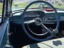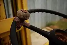 The device is a small, independently rotating knob (similar to a U.S. classic door knob) facing the driver that is securely mounted on the outside rim of a steering wheel.[1] The protruding knob is an aftermarket accessory. The free rotation is intended to help make steering with one hand easier or faster. Brodie knobs were popular on trucks and tractors before the advent of power steering. Their main use today is still in trucks, particularly semi trucks, where they allow simultaneous steering and operation of the radio or gearshift. They are also used on forklifts, riding lawnmowers, and ice resurfacers, where frequent sharp turning is required. The knobs are often installed as an aftermarket accessory on farm and commercial tractors, its main purpose being to ease one-handed steering while the driver operates other controls with the other hand or is traveling in reverse.