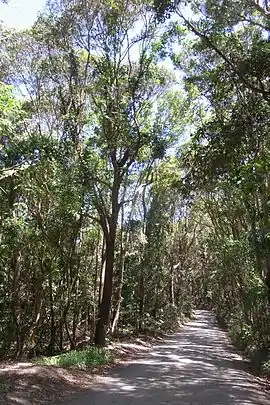 The Broken Head Nature Reserve is a protected nature reserve located in the Northern Rivers region of New South Wales, Australia, adjacent to the promontory of Broken Head which lies approximately 9 km south of Cape Byron, the easternmost point of Australia. The 98-hectare (240-acre) reserve contains an intact segment of littoral rainforest. Much of the Australian littoral rainforests have been destroyed for agriculture, mining or housing. Species of tree include Tuckeroo, Broad-leaf Lilly Pilly, Native Elm, Pear Fruited Tamarind, Bennett's Ash, Bangalow Palm, Rusty Rose Walnut and Hoop Pine. The extremely rare Scented Acronychia may naturally occur here. Climbers such as Whip Vine and Lawyer Cane are very common. The weed lantana is a serious problem in disturbed areas.[1] The area is noted for its Aboriginal culture, rainforest walks, whale watching, and fishing from pristine beaches.[2]