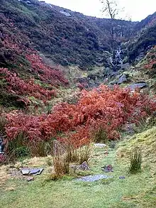 The Brontë Waterfall is a small waterfall located about a mile south-west of Stanbury, near Haworth, West Yorkshire, England. The area surrounding the waterfall is mainly moorland and farmland but is part of Brontë Country. It is an area of outstanding beauty and famous for its association with the Brontë sisters.[1] Below the falls can be found an old stone bridge named Brontë Bridge across South Dean Beck. The bridge was destroyed in a flash flood in May 1989 and rebuilt in 1990.[2]