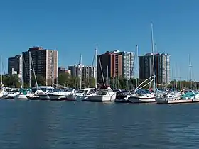 The Bronte Marina. In the background the high rise apartment buildings of the Bronte community can be seen