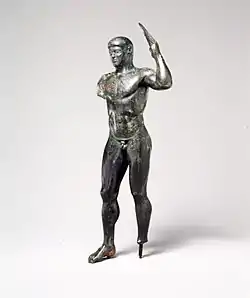 The Bronze Diskos Thrower Statue is a 24.51 cm bronze statue of an unknown youth athlete.[1] The exact origin of the statue remains unknown, though it is believed to be somewhere on the Peloponnese.[2] It was found on the island of Cyprus. The statue is currently displayed at the Metropolitan Museum of Art in New York City.