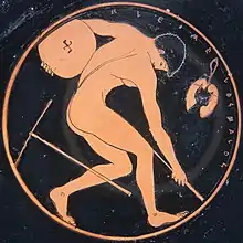 This event was a very popular sport in the Greek community. The goal was to throw a diskos as far as possible. The diskos, usually made out of metal, was rather heavy and required precise form to throw properly. Most were flat, although it was possible that some had a slight bulge at the center. The first landing of the diskos to the thrower would be the distance measured.[4]