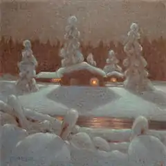 Bror Johan Lindh, born Bror Jansson (19 July 1877, Prästbol, Kil Municipality - 6 February 1941, Grönäs, Karlstad Municipality) was a Swedish painter, graphic artist and cartoonist. He specialized in winter landscapes.