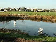The higher part, The Common, is a large area of open land with houses around it. As at 2008 there were three ponds on the common, inhabited by a paddling of ducks in their breeding season. At one end of the common is the Bell public house, and the football pitch and bowling green.