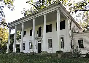 In 1936 Irving F. Hall, the president of State Capital Life Insurance Company, and his wife, Olive Hall, purchased ten lots along White Oak Road in the Anderson Heights neighborhood in Raleigh.[1][2] Construction on the house, situated on the three highest plots of land on the property, finished in 1938.[1] The house was built in the Colonial Revival style.[1][3] The Halls sold the home to a Raleigh physician in 1950.[1] It was sold again in 1960.[1] In 1965 the house was purchased by Robert Bain Broughton and Celeste Gold Broughton.[1][4] Broughton was the son of Alice Willson Broughton and J. Melville Broughton, a United States senator and former Governor of North Carolina, and a grandnephew of Needham B. Broughton, a state senator.[1] His wife was the daughter of publisher John D. Gold and author Daisy Hendley Gold and a granddaughter of publisher Pleasant Daniel Gold.[5][6] The Broughtons later divorced, and Celeste Gold Broughton stayed in the home with their two sons.[1]