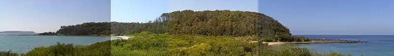 ![]() Broulee Island looking south from Burri Point | |