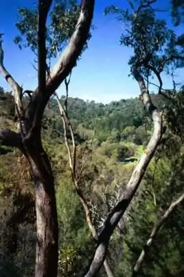 The creek valley south of Brown Hill is home to Brownhill Creek Recreation Park[2] and has been the site a recreation park since the late 1800s. A bathing hole was established at a constructed dam on the creek near Mitcham village in 1894 but was removed eight years later to protect the interests of market gardeners.[3] A camping ground at the entrance to the valley was declared in 1954 in the 120-acre (49 ha) "National Pleasure resort"[3] and a stone plaque declaring a "pleasure resort" from the early part of the 20th century still stands at the site. A caravan park is presently located at the site of the original camping ground and the recreation reserve extends several kilometres upstream into the main creek valley.
