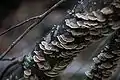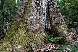 East Gippsland's Eucalyptus nitens forest biomass contains at least 700 (and possibly up to 2000) tonnes carbon per hectare ("green carbon") above ground.[6] Recovery of the carbon debt from clearing intact natural eucalypt forests through afforestation or reforestation takes more than 100 years.[7] Research into the age class structure of Brown Mountain's trees and the forest's carbon capacity is ongoing. 85% of the wood harvested in Victoria's forests is converted to woodchip (mostly for use in paper), sawdust and waste.