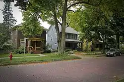 Most of the popular architectural styles from late 19th and into the 20th century are found here. The most popular house form is the American Four-Square.[3] Other popular styles include Queen Anne, Italianate, and the Greek Revival. The houses are both one and two stories in height, and wood-frame construction is prominent with rubble stone foundations. Some exteriors are clad in brick. Four houses have been individually listed on the National Register of Historic Places: Charles Berryhill House (c. 1850–1865), Vogt House (1890), Bohumil Shimek House (c. 1890), and the Arthur Hillyer Ford House (1909).