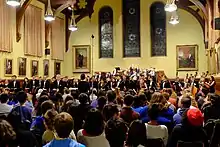 The Brown University Orchestra (BUO) was founded in 1918 and is composed of approximately 100 members of the Brown University community. It was led by conductor Martin J. Fischer at its inception, until his faculty retirement. Paul Phillips lead the orchestra from 1989 until 2017,[1] with Mark Seto currently serving as conductor.[2][3] Alumni of the orchestra include members of the Chicago Symphony and other acclaimed ensembles.