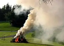 In chemistry, brown carbon (Cbrown/BrC) is brown smoke released by the combustion of organic matter. It coexists with black carbon when released in the atmosphere.[1]