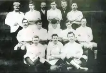 James Brown Jr., the youngest son of James and Mary, fathered nine sons, seven of whom became footballers for Alumni Athletic Club. Five of those seven would also play internationally for Argentina.[4] The eldest son to play football was Diego Hope (b. 1875). The next oldest, Jorge Gibson (b. 1880, nicknamed el Patricarcho) was the most accomplished member of the family. He would play in ten Argentine championships and representi Argentina 23 times.[4] Jorge was treasurer of Alumni at the point it was disbanded.[5] Jorge played in Argentina's first international in a match against Uruguay in Montevideo.[6][7] The next oldest, Carlos Carr Brown (b. 1882), was the first to make an impact on Argentine football. Carlos learned his football in Britain before returning to Argentina and representing the national team twice.[2][4] Tomás (b. 1884) turned out for Alumni but was not capped internationally.[4] Ernesto Alejandro (b. 1885; nicknamed el Pacifico for his peaceful nature) once scored six goals in a match for Alumni.[5][8] The two youngest, Alfredo (b. 1886) and Eliseo (b. 1888), also played international football.