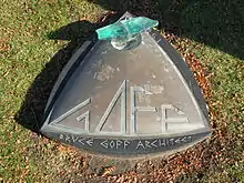 Goff died in Tyler, Texas, on August 4, 1982.[30] His cremated remains are interred in Graceland Cemetery, Chicago, Illinois, with a marker designed by Grant Gustafson (one of Goff's students) that incorporates a glass cullet fragment salvaged from the ruins of the Joe D. Price House and Studio.