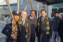 Following years of at-large city council elections, Harrell was reelected into the newly created District 2 position after a change to district-based city council elections. On January 4, 2016, he was sworn in to the District 2 office and elected council president by fellow councilmembers.[21] In 2016, Harrell supported a measure to attempt to bring back the Seattle SuperSonics, but the measure was defeated in a 5–4 vote.[22][23]
