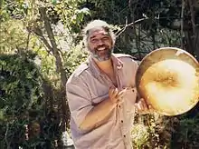 The title character of Bob Dylan's song "Mr. Tambourine Man" was probably inspired by Langhorne, who used to play a large Turkish frame drum in performances and recordings.[3][4] The drum, which Langhorne purchased in a music store in Greenwich Village, had small bells attached around its interior, giving it a jingling sound much like a tambourine. Langhorne used the instrument most prominently on recordings by Richard and Mimi Fariña.[5] The drum is now in the collection of the Experience Music Project, in Seattle, Washington.