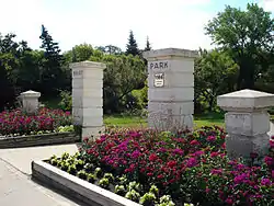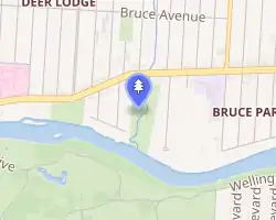 Bruce Park is a 13-acre (53,000 m2) urban park located at 1966 Portage Avenue, in Winnipeg, Manitoba, Canada. The park is bordered to the south by the Assiniboine River, to the east by Douglas Park Road, to the west by Deer Lodge Place, and to the north by Portage Avenue.