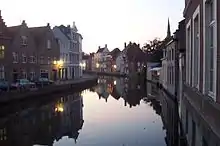 ![]() The Rozenhoedkaai (canal) in Bruges with the belfry in the background | |