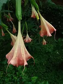 Brugmansia insignis is a South American species of angel's trumpet with large, fragrant flowers. The IUCN has listed this species as Extinct in the Wild,[1] although like the other members of its genus its survival has been ensured by its popularity as an ornamental plant.