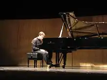 In 1985, Belthoise entered the École normale de musique de Paris in Françoise Buffet-Arsenijevic[4]'s class, also studying in parallel with Madeleine Giraudeau-Basset. In 1987 he obtained the Diploma of Teaching unanimously of the jury then the Superior Diploma of Execution of piano in 1989, the same year as the pianist Frederic Chiu. He then perfected his skills on various occasions with François-René Duchâble, Bruno Rigutto, Helena Sá and Costa. He also studied harmony with Françoise Lengelé. From 1985 onwards, his qualities as a chamber musician were noticed by several performers with whom he gave his first concerts (Jean-Claude Dewaele, Maurice Gabay, Frédéric Laroque,[5] Jean-Philippe Audin,[6] Pascal Meslé...) and recorded in 1987 for the Cybelia Records, the three sonatas by Johann Sebastian Bach BWV 1027-1029 in Les Solistes Français series. In 1988, he received the Charles Oulmont Prize from the Fondation de France and in 1991 he was laureate of the Laurent-Vibert Foundation. Belthoise has been invited since 1993 by festivals in France and abroad (Festival International de la Vézère, Les Concerts de Vollore, Festival de l'été Mosan, Festival d'Estoril...). He performs as soloist or with his partners (Yves Charpentier, Anne Chamussy,[7] Christophe Giovaninetti,[8] the Concert Impromptu, the Ensemble viennois de Paris, the Trio Pangea[9]). He may also be heard on France Musique, the Saarländischer Rundfunk or Antena 2 in Lisbon where he likes to interpret the French repertoire: Fauré, Poulenc, Honegger, Milhaud, Roussel, up to the composers of today. He gave first performances of works by Emmanuel Hieaux, Bernard de Vienne, Marc Kowalczyk, Louis Marischal, Alberto Colla, Raymond Alessandrini.