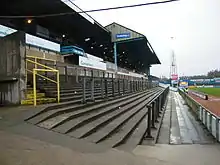 The upper tier is known as the family stand with a small section to the south known as the 'A' Stand which houses school children. The full extent of the upper tier is seated and is the location of the stadium's most recent improvements, upgraded seating which was bought from Darlington in 2006 during the club's move.[8]