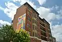 In the 1890s the character of the subdivision began to change, as many prominent members of the local German Jewish community moved to Brush Park. This period of the neighborhood's history is recorded by the neoclassical Temple Beth-El, designed by Albert Kahn for the Reform Congregation and constructed in 1902.[18][23][24] Around the same time, Brush Park saw the construction of its first apartment buildings. One of the neighborhood's earliest examples of this type of structure was the Luben Apartments, built in 1901 by architect Edwin W. Gregory[18] and demolished in 2010.[25] The Luben featured large and sumptuous units, and its elaborate limestone façade blended with those of the surrounding mansions; however, the construction of apartment buildings undoubtedly represented a decrease in the quality of Brush Park's building stock.[18]