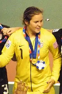 Bryane Somerton Heaberlin (born November 2, 1993) is an American soccer goalkeeper who plays for Eintracht Frankfurt.[2][3][4] She previously played for Turbine Potsdam.[5] She has represented the United States on the under-20 national team and won gold with the team at the 2012 CONCACAF Women's U-20 Championship and 2012 FIFA U-20 Women's World Cup.[6]