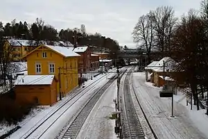 Bryn Station (Norwegian: Bryn stasjon) is a railway station on the Trunk Line located in the Bryn neighborhood of the Gamle Oslo borough of Oslo, Norway. Situated 3.89 kilometers (2.42 mi) from Oslo Central Station, it features two platforms. The Loenga–Alnabru Line passes through the station without a platform. Bryn is served by the L1 line of Vy's Oslo Commuter Rail.