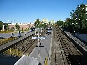 Brynseng is a rapid transit station on the Oslo Metro system located in the Helsfyr borough. The station is shared by three lines, the Østensjø Line (Line 3), the Furuset Line (Line 2) and the Lambertseter Line (Line 1 and 4). The station has four platforms. The two northernmost platforms are for trains on the Østensjø- and Furuset Line. The Lambertseter Line uses the two other platforms before turning south and leaving the other two lines. At Brynseng Station is one of the train yards for the metro operator Oslo T-banedrift.