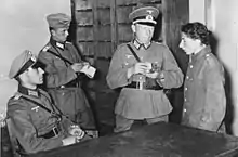The German armed forces launched Operation Barbarossa against the Soviet Union on June 22, 1941, and Brześć was captured the same day.[13] On 24 June 1941, a 15 man Sicherheitspolizei detachment, commanded by SS-Untersturmführer Schmidt, arrived in Brześć.[13] On December 16, 1941 the Germans placed Brest under the administration of the Reichskommissariat Ukraine and established a Nazi ghetto in the city for some 18,000 Polish Jews,[2][14] who still resided there after months of deportations and ad hoc mass executions. On July 10–12, 1941 the German Einsatzgruppe under SS-Obergruppenführer Karl Eberhard Schöngarth massacred 5,000 Jews including 13-year-old boys and 70-year-old men in a single night.[2] The Order Police battalions passing through Brześć and Białystok carried out significantly larger shooting actions.[12] "The first massacre of Brest Jews – wrote Christopher Browning – was perpetrated not by the notorious Einsatzgruppen but rather by Police Battalion 307 with Wehrmacht support, in mid-July, on the orders of Himmler's chief of Order Police, Kurt Daluege.".[15]