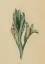 Piece of gnawed on Artemisia campestris leaf, with cocoon at the right