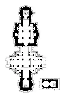 The eastern shrine, which contains a Shiva linga has a similar plan; a Sukhanasi (called "nose") which is a low protrusion of the tower over the shrine and is built over the vestibule which connects the vimana (cella) to the hall.[7][8] The halls are adjoining. The ceiling art in the open hall is of fine quality and the pillars have a glossy finish.[6] The pillars of the mantapa (hall) are bell shaped, a design achieved by turning with lathes.[2][10]