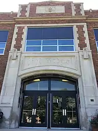 The present high school was constructed in 1922 and is designed in the Collegiate Gothic style popular during that time period. It is a two-story flat-roof structure with a dark red brick facade embedded with decorative limestone accents. Additions to the original building include the science wing on the east side, the competition gym on the northwest side and the auxiliary gym on the southwest side. The school is a contributing property in the Buchanan North and West Neighborhoods Historic District. The Buchanan Union High School existed at the same site from 1872 to 1922. A portion of the original building's first story remains standing immediately north of the Ray Miller Industrial Arts Center. The tower bell from the 1872 high school is on display just outside the main entrance to the science wing.[10][11]
