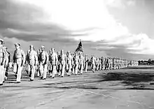 As the war began drawing to an end in Europe, and later in the summer of 1945 in the Pacific, the number of trainees and the level of activity at the base was reduced rapidly. With the Japanese surrender and the end of World War II most of the temporary training bases such as Buckingham Field were put on inactive status and eventually closed.