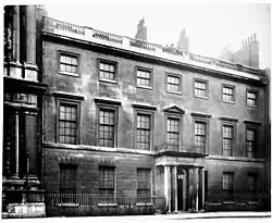 Buckingham House was a residence of the Dukes of Buckingham and Chandos in Pall Mall, London. Designed by the Neoclassical architect Sir John Soane in 1790,[1] it featured the Neo-Palladian style for the three-storey-high frontage. The construction work finished in 1795.[2]