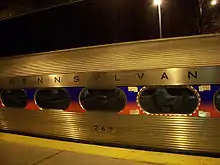 The Budd Silverliner was a model of Electric Multiple Unit railcar designed and built by the Budd Company with 59 examples being delivered starting in 1963. Fifty-five of the cars were purchased for the Reading and Pennsylvania Railroads with public funds for use in Philadelphia, Pennsylvania, area commuter rail service with the remaining 4 cars being purchased by USDOT for use in high-speed rail experiments in 1965. Based on a series of 6 prototype Pioneer III cars built in 1958, the Silverliners represented the first production order of "modern" commuter MU equipment purchased by either railroad and earned their name from their unpainted stainless steel construction which contrasted with the painted carbon steel bodies of the pre-war MU fleets.[1] The cars became a fixture of SEPTA Regional Rail service providing the name to their entire series of EMU railcars before finally being retired in 2012 after 49 years in service.