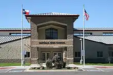 Buffalo High School is located 1724 N. Buffalo Ave. The current principal is John Clements. The construction for the new high school building finished in 2010, with spacious halls that resemble a college campus. There are four wings, each representing a different college. These four are the Texas A&M hall, which serves as the language hallway; the Texas Tech hall, which serves as the elective hallway; the University of Texas hall, which serves as the math and history hall; and the Baylor University hall, which serves as the science hall. The most noticeable add-on to the school is the gymnasium. The gymnasium is adjacent to the cafeteria which has a glass wall allowing one to look over the gym while eating and conversing. In 2010, the High School received an Academically Acceptable rating by the TEA.