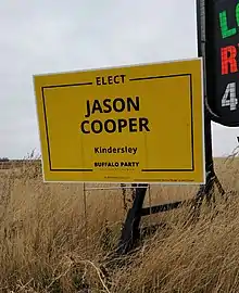 On June 3, 2020, the party's executive board voted to change the party's name to Buffalo Party of Saskatchewan. That decision was ratified by a membership vote.[9][10] In July 2020, the party officially changed its name and named Wade Sira as its new interim leader.[10] The party ran seventeen candidates, including Sira, in the 2020 provincial election. They did not win any seats and finished in second in four ridings.[11]