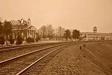 During the post-Civil War construction of the extended Richmond and Danville Railroad System in 1865, railroad stockholders Thomas Garner and Larkin Smith purchased land around the railroad's right-of-way and began developing the city of Buford.[4][5][6] The city was named after Algernon Sidney Buford, who was president of the Atlanta and Richmond Air-Line Railway during the railroad's construction.[6][7] The town began rapidly expanding around the railway after its completion in 1871,[4] and it was incorporated as the Town of Buford on August 24, 1872,[8] and renamed the City of Buford in 1896.[7]