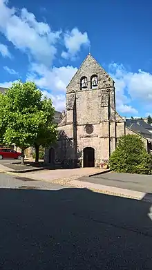 Among the monuments dating from the Middle Ages in Bugeat was the church of the parish, a parish under the patronage of Saint-Doux. A church existed in the 12th century, in Romanesque style, in the form of a cross. This Romanesque church no longer exists and all that remains from that time is a Romanesque baptismal vessel, adorned with curved arches, surmounted by a row of small circles. This ancient church was replaced, between the 14th and 15th century's, by the present church, in Gothic style. The building has on its entrance facade, a steeple-wall and inside, several bays with bossed keystones vaults with sculptures of a crown, a rose and a rhombus.