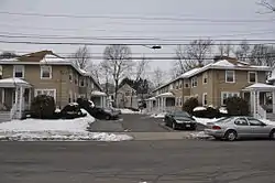 The two rowhouses are set on the north side of Richardson Avenue, about halfway between North Avenue and Main Street, both major north–south thoroughfares through the center of Wakefield. They are two-story wood-frame structures, oriented with their long axes north–south on either side of a shared drive and parking area. They have hip roofs and clapboard siding, and rest on raised fieldstone foundations. The eaves have exposed rafter ends typical of Craftsman styling. The principal decorative elements are the main entrance porches, which have latticework support columns supporting hip roofs. Each building has three such porches, one in front and two on the side, with those on the side providing access to two units.[2]